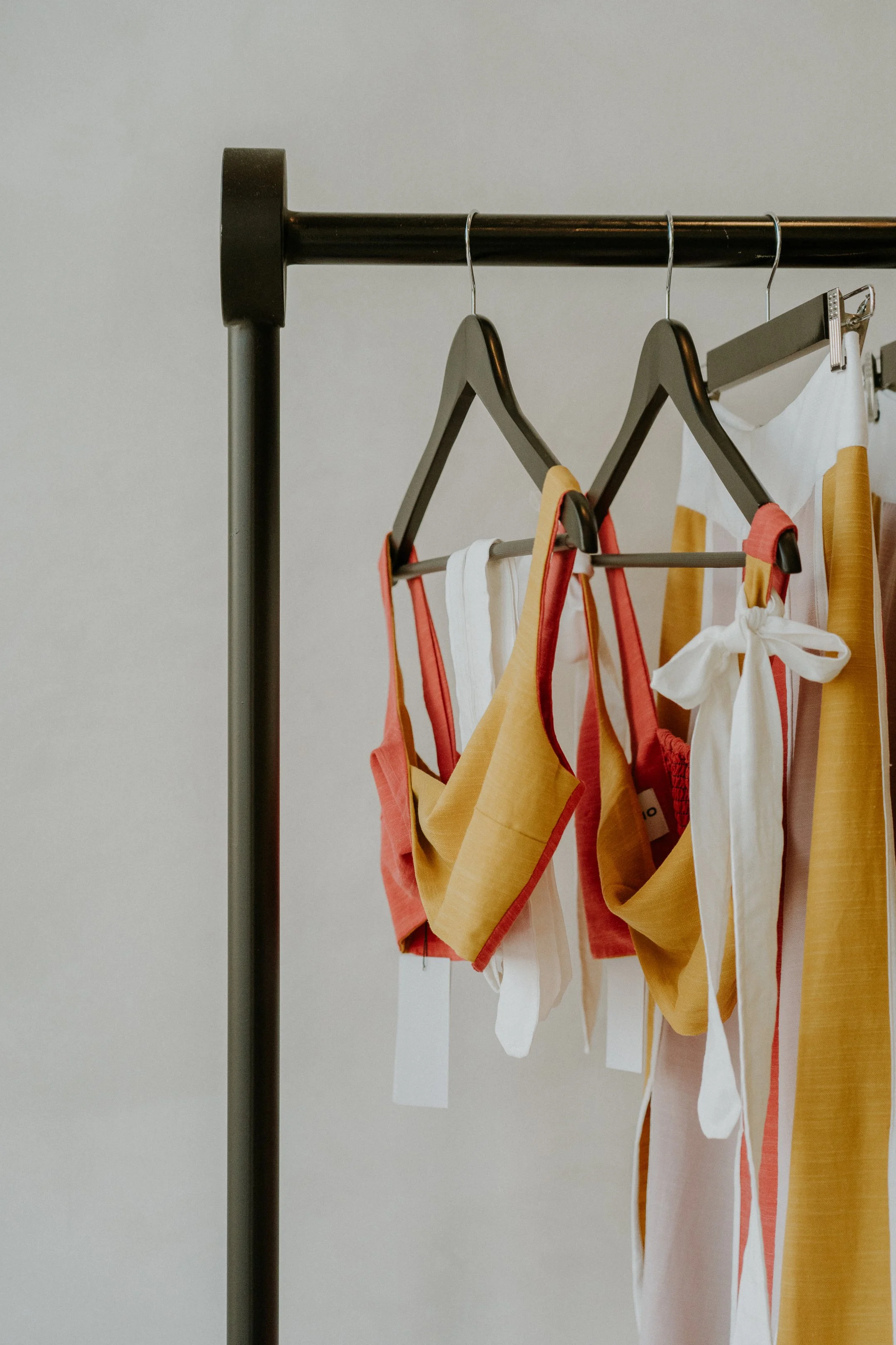 El diseño minimalista, limpio y brutalista en un local comercial de ropa transforma el espacio en un lienzo para las piezas que se exhiben.