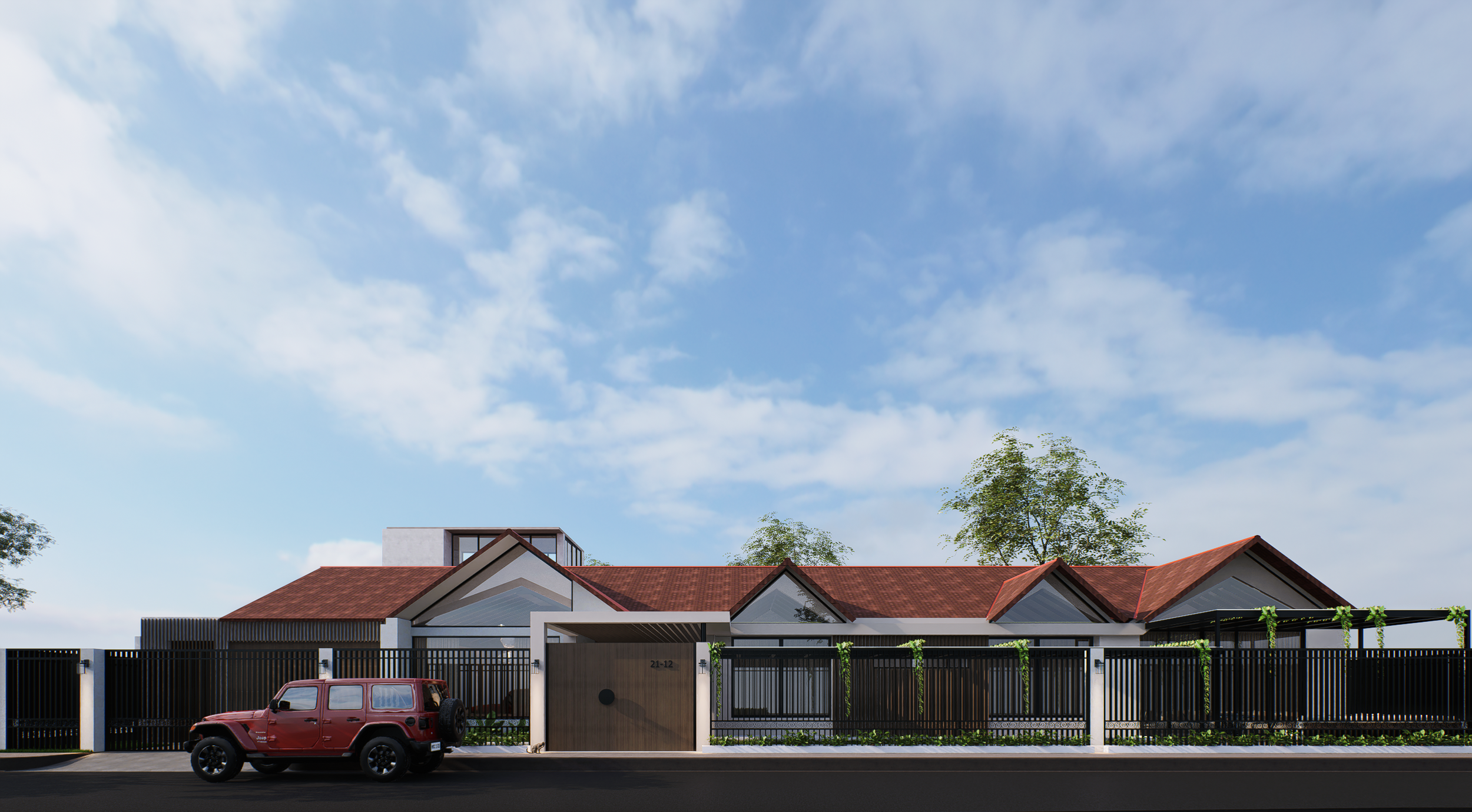 Esta fachada es mucho más que una entrada; es el reflejo de un diseño integral donde la cubierta a dos aguas se convirtió en el alma y punto focal del proyecto. Desde el inicio, el proceso creativo se enfocó en este elemento, que no solo da carácter a la vivienda, sino que inspira cada espacio en su interior.