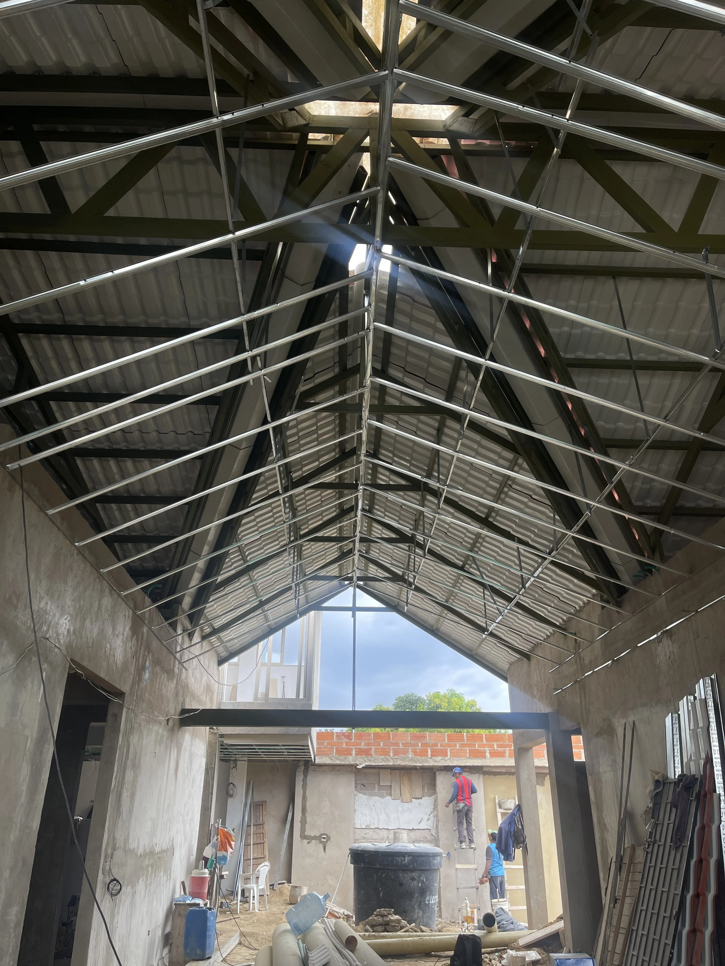 El diseño abarcó todo el hogar, combinando asesoría arquitectónica y de interiores para garantizar armonía y cohesión. Cada área de la vivienda fue concebida para reflejar la esencia del techo, con líneas que conectan lo estructural y lo estético. Los materiales, los colores y las texturas dialogan con la cubierta, logrando un equilibrio entre calidez, funcionalidad y personalidad.